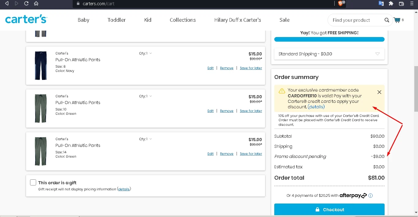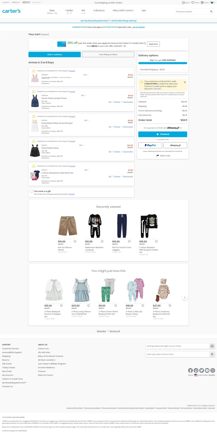 coupons.businessinsider.com › carters20% OFF Carter's Promo Codes & Coupons September 2022 - Insider Credit Card Holders Get $10 Off Orders Over $50 with Carter's Coupon: Code: September 11: 20% Off Your First Order with This Carter's Coupon: Code: September 11: Shop Fall Styles Up to 40% Off: Deal: September 12: Take an Additional 20% Off Clearance Styles: Deal: September 12: Enjoy a 20% Off Carter's Coupon Code When You Refer a Friend: Code ...