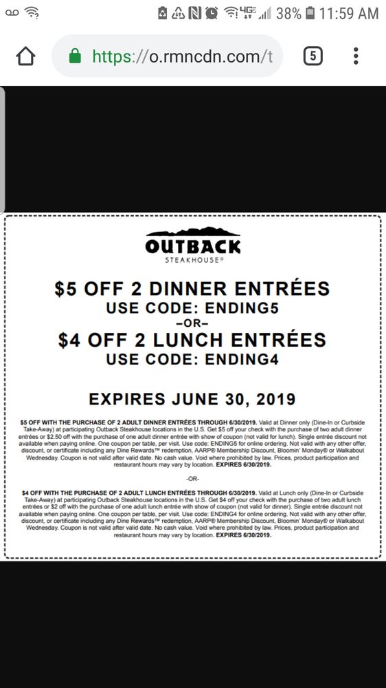 5 off outback coupon